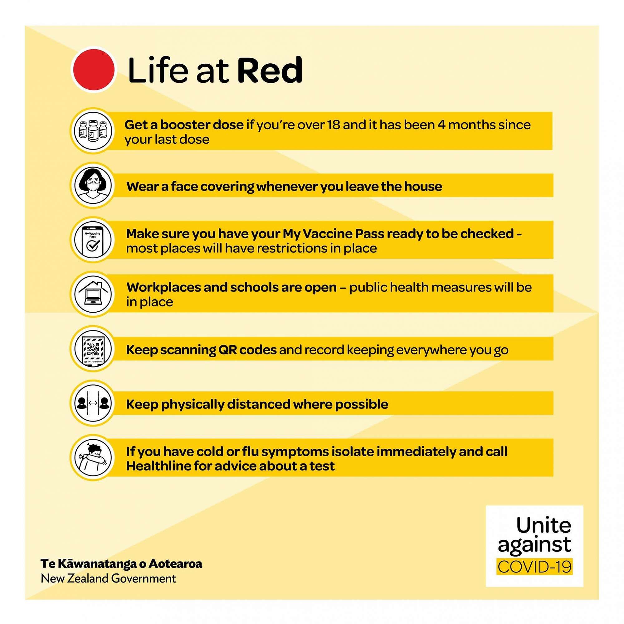 We moved to the RED setting from 11.59 pm on 23 January 2022 due to the Omicron variant of COVID-19 spreading in NZ. We are updating our advice on the Traffic Light System as new information comes to hand.